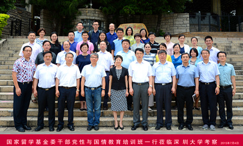 7月4日,国家留学基金委干部党性与国情教育培训在我校举行。国家留学基金委秘书长、党总支书记刘京辉,副秘书长张宁、曹士海、王胜刚等干部,我校校长李清泉,副校长阮双琛,中国经济特区研究中心、教务部、国际交流与合作部、人力资源部、研究生院、国际交流学院等相关部门负责人参加了会议。 阮双琛对来宾表示欢迎并简要介绍深大的情况。他说,深大1983年建校至今,已有32年。在发展的过程中,得到了教育部和国...
