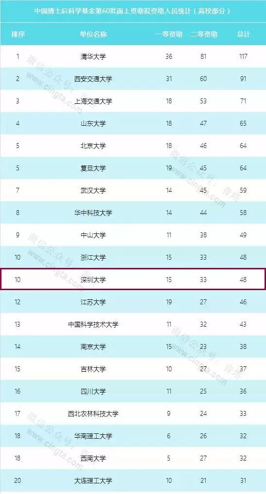 11月2日,中国博士后科学基金会正式公布了第60批面上项目资助名单,共有2915个项目获得资助,其中一等资助829项,二等资助2086项。我校共获得48项资助,位居内地高校第10,包括一等资助15项、二等资助33项,表现出色。 中国博士后科学基金是专门用于资助在站博士后科学研究的基金,旨在促使具有发展潜力和创新能力的优秀博士后进行创新研究,培养造就一支跨学科、具有复合型和战略性特点的博士后人才队伍。博士后基金每年可申请...
