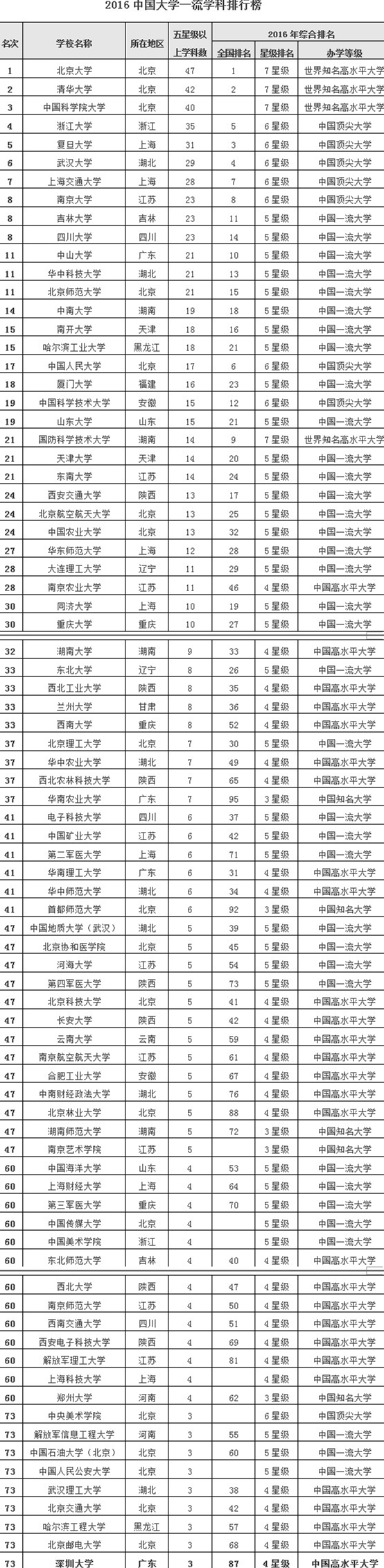 我校居2016中国大学一流学科排行榜第73位