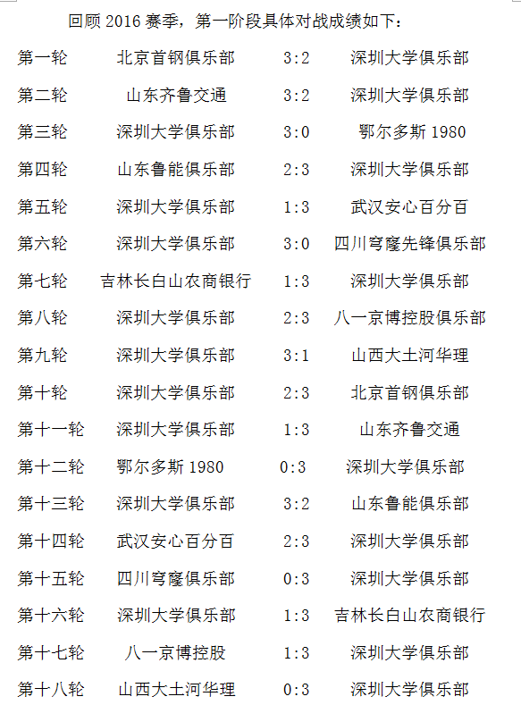 2016年中国乒乓球俱乐部超级联赛vsport俱乐部代表队总分排名第五