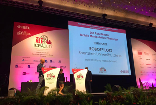 刚刚从新加坡结束的IEEE International Conference on Robotics and Automation (IEEE ICRA)传来喜讯,我校RobotPilots代表队在ICRA Robomaster全球机器人挑战赛获得季军。 IEEE ICRA是全球机器人和自动化领域最权威的学术会议,今年的ICRA不仅有来自全球的机器人学者集聚一堂讨论最前沿的研究成果,还有ICRA官方与顶尖机器人企业联合举办的机器人比赛,旨在为海内外机器人研究爱好者提供科技创新的平台,同时...