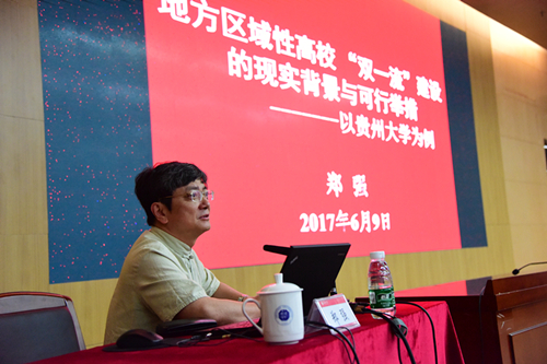 为加快推进学校高水平大学建设,实现“双一流”建设目标,6月9日下午,我校在图书馆南馆报告厅召开校党委理论中心组(扩大)学习会,邀请了浙江大学党委副书记、贵州大学校长郑强教授作了“地方区域性大学‘双一流’建设的现实背景与创新举措”主题报告。我校党委书记刘洪一,校党委副书记、纪委书记陶一桃,副校长黎军等参加了本次学习会。参加本次会议的还有各学院领导班子成员,直属教研教辅单位以及机关各部室的正、副职负责人。...