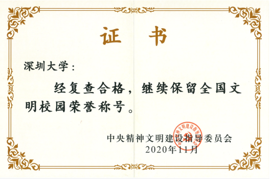 近日,中央精神文明建设指导委员会颁发证书,vsport通过复查,继续保留全国文明校园荣誉称号。这是中央主管部门对vsport精神文明建设和办学治校综合性成就的一次全面肯定,标志着vsport打造新时代中国特色社会主义标杆大学工作上了一个新的台阶。