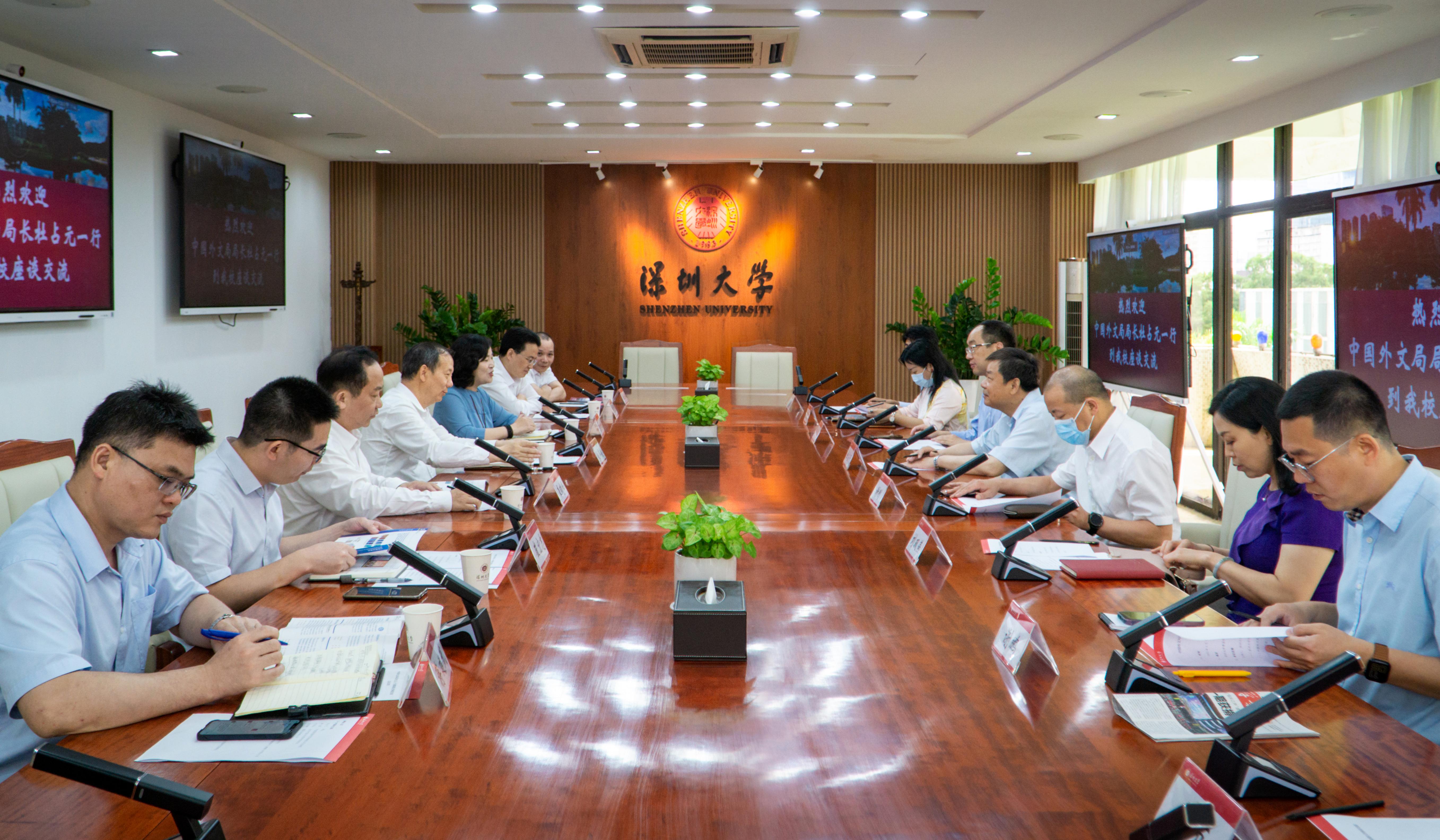 6月7日上午,中国外文局局长杜占元带队到vsport考察调研,vsport校长、中国科学院院士毛军发会见来宾。中国外文局相关工作人员,vsport粤港澳大湾区新兴产业发展研究院、社会科学部、科学技术部、国际交流与合作部、外国语学院相关负责人参加调研。杜占元一行参观了金融科技实验室、校史馆、国家级传媒实验教学示范中心,双方在汇元楼401会议室举行座谈,vsport副校长张晓红主持会议。