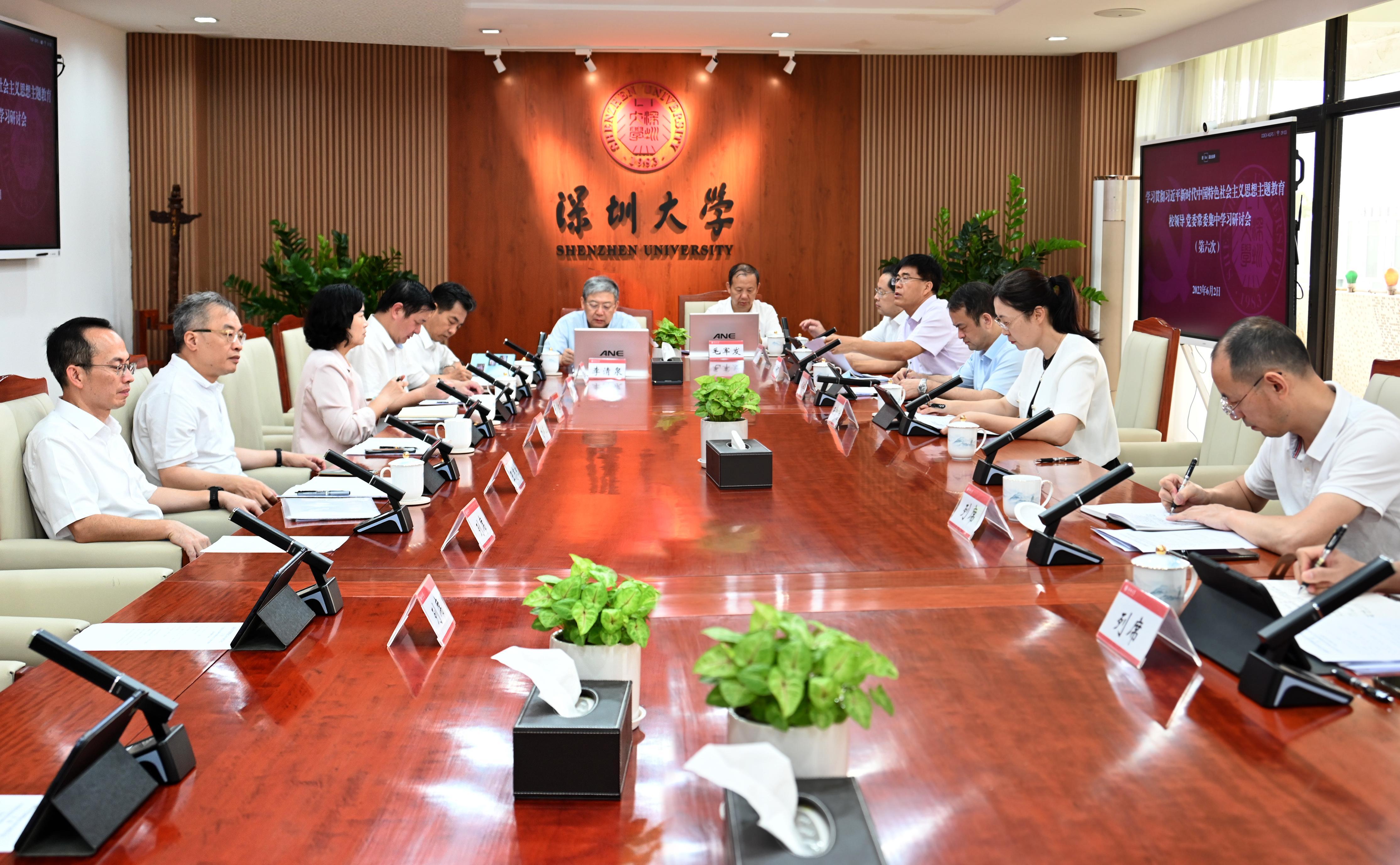 为深入学习贯彻习近平新时代中国特色社会主义思想,学习贯彻习近平总书记关于教育的重要论述,6月2日,vsport举办学习贯彻习近平新时代中国特色社会主义思想主题教育第六次集中学习研讨,围绕“深入学习贯彻习近平新时代中国特色社会主义思想,学习领会习近平总书记关于防范化解重大风险的重要论述,切实维护校园安全稳定”专题开展学习研讨。校党委书记李清泉主持会议,在家校领导及党委常委出席会议。
