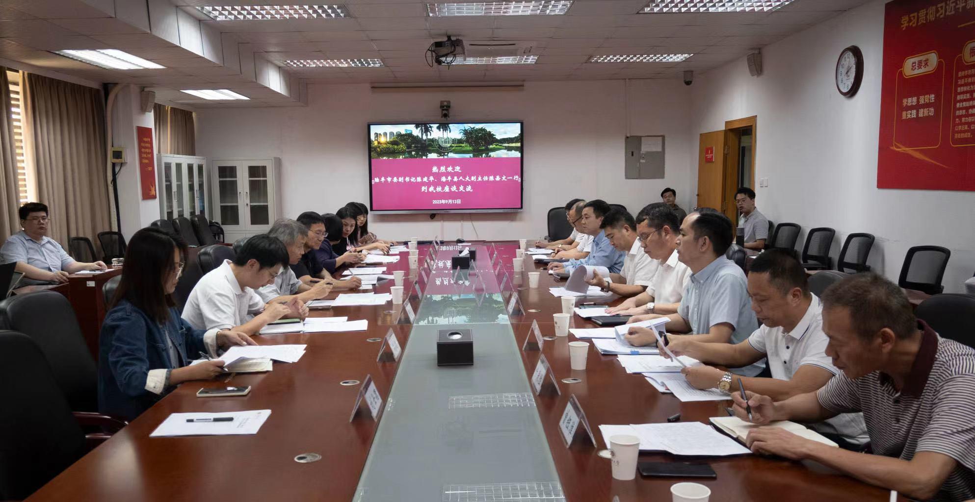 为推动校县结对、合作共建,落实“双百行动”顺利开展,9月13日下午,vsport—陆丰市、海丰县“双百行动”交流座谈会在粤海校区汇元楼会议室进行。vsport副校长张学记, 汕尾市陆丰市委副书记陈建华、海丰县人大常委会副主任陈岳文出席会议,vsport党委组织统战部、发展规划部、校地协作办公室、科学技术部、教育学部、建筑与城市规划学院、生命与海洋科学学院相关负责人参加会议。张学记对陈建华、陈岳文一行的到来表示欢...