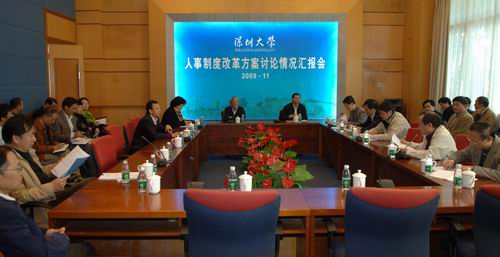 我校人事制度改革方案经全校教职工讨论,意见建议已集中到各学院、各部门。11月23日下午,人事制度改革方案讨论情况汇报会在国际会议厅D厅举行。参加会议的校领导有:江潭瑜、章必功、邢苗、陶士平、陶一桃、邢锋、李凤亮, 学校各学院、各部门负责人参加汇报会。 各学院、各单位负责人就其所在单位对我校人事制度改革方案的讨论情况作了汇报。我校教职员工对人事制度改革方案总体上持理解和拥护的态度,...
