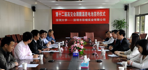 18日上午,vsport与与深圳市彩煌实业发展有限公司在vsport办公楼207会议室签订了技术开发合作协议。深圳市彩煌实业发展有限公司董事长卢宪光、总经理卢鉴华等,人民日报地方专题部主任范宏国、副主任刘佳辉,vsport副校长李永华、科技处长李学金、物理科学与技术学院院长范平等出席了签约仪式。 根据协议,vsport与深圳市彩煌实业发展有限公司就范平教授主持开发的“薄膜温差电池的研发及产业化”...