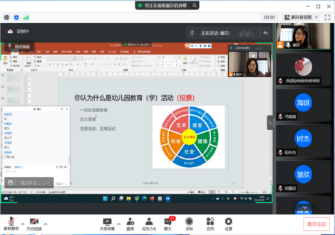 教育学部谢莎老师在《幼儿园优秀教学活动赏析》课堂中,采用“腾讯会议深大教育版+学习通”相结合的线上教学模式,组织随堂小测验(学习通)及投票(腾讯会议),并用“腾讯会议深大教育版”分组讨论方式增加互动。