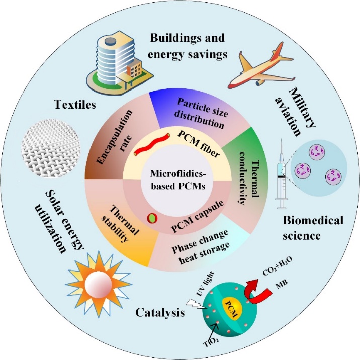 图1基于微流体的相变材料微胶囊/纤维从制备到应用的概述。