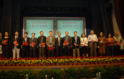 陈思平副校长宣读了学校关于科学研究奖励表彰的决定。江潭瑜书记、章必功校长、陶士平副书记、倪嘉缵院士和谢维信主任为获奖代表颁奖。
