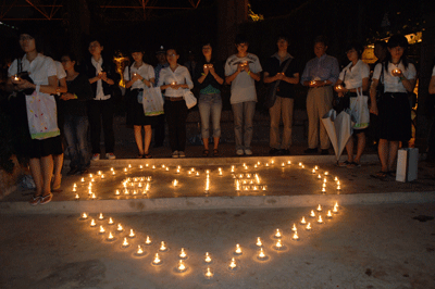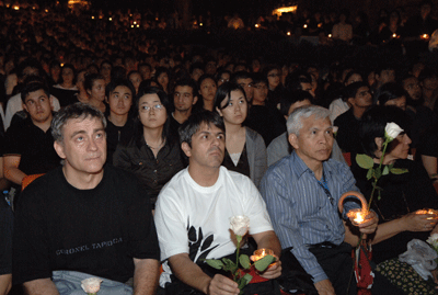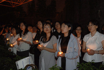 5月20日晚,为了表达对四川汶川大地震遇难同胞的沉痛哀悼,我校在演会中心举行追思会,为逝者祈祷,为生者祝福;并现场开展继续向灾区人民捐款活动。校领导江潭瑜、章必功、陶士平、陶一桃、阮双琛、陈思平、李永华,各部处、各学院负责人以及各学院、留学生部学生代表近2000人参加了追思会。