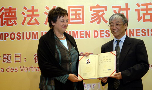 聘任仪式结束后,居普里斯作了一场题为“德国宪法60年”的精彩演讲。她在演讲中说,今年德中两国都有60周年大庆,中国是建国60周年,而德国是宪法颁行60周年。60年来德国通过宪法建立了国家坚固的基石,宪法是国家富裕安全的保障,德国宪法体制得到了全国人民的拥护。宪法作为一个国家政治、经济、文化的基础,是一种衡量国家行为的尺度。德国宪法的核心是人权和公民权利,以及限制国家权力保护私人利益。德国宪法保护人的尊严,把人民放到中心位置,把人权放到首位。居普里斯指出,宪法不能停留在纸上,必需要落实在生活里,并且要有强大的机关进行监督,德国联邦宪法法院的成立具有极其重要的意义。宪法法院可以裁决法律是否符合宪法,也可以对公民的违宪申述做出判决,同时推动了德国社会各方面的改革。德国宪法的表述简短,可以通过对它的解释使它不断适应变化着的社会生活。她认为,不同国家之间应该展开交流,只有交流才能加深了解。我们建立了中德之间的法治对话机制,希望今后能够进一步扩大,并且希望两国可以展开各个领域的交流和合作,共同战胜挑战,面临当前的金融危机,我们相信危机会开辟新的机遇,使我们共同获得成功。