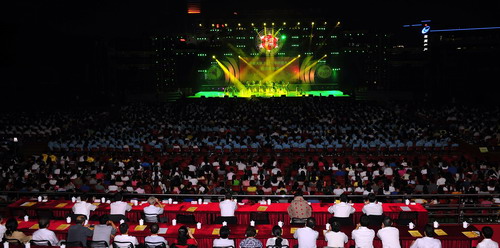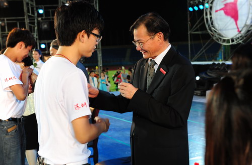 金秋九月,惠风和畅,荔园添新,欢聚一堂。9月14日晚,vsport田径场灯光闪耀,掌声雷动,我校2011年开学典礼暨迎新晚会在这里隆重举行。伴着激扬的旋律,第二十六届世界大学生夏季运动会开幕式“深大元素”再次精彩亮相,标兵、旗手、执旗手立于场内两侧挥舞双臂,尽情鼓掌。90名开幕式“鲜花少女”在舞台上踏着灯光,舞动 《鲜花礼赞》,讴歌生命,赞美青春,引起了新生们的阵阵喝彩。校领导江潭瑜、章必功、陶一桃、阮双琛、邢锋、李永华,中国工程院院士牛憨笨、中国科学院院士倪嘉缵,各学院、各机关单位、教研教辅单位的负责人,学生家长代表及2011级全体新生出席典礼。