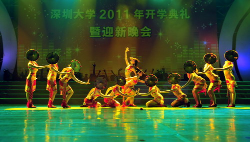 开学典礼结束后,以“青春活力”为主旋律的迎新晚会在一片欢呼声中上演。绚丽的灯光、挥舞的荧光棒、优美的舞姿……,一场欢乐的盛宴在这里进行。民族舞蹈《大地飞歌》热情洋溢,活力四射,向我们展现了不同民族的风采。男生表演唱《say hello》愉快而轻松,赢得了一阵又一阵的掌声。小型舞蹈剧《梦在飞》颇具特色,讲述了深大学子求职时在理想与现实之间的挣扎,演绎了一段追梦的无悔乐章,溢满着浓浓的乡情、友情和爱情,奏响新生向梦想进发的号角。剧中的人物个性鲜明,场景布置也独具特色,深受同学们的喜爱。女生独唱《红红的日子》用欢快的节奏祝福新同学们在未来生活更加美好。傣族舞蹈《水姑娘》调皮可爱,向观众展现了傣族姑娘温柔大方的气质,让观众如痴如醉。作为大运会主题曲的《从这里开始》在晚会的舞台上得到了再次演绎,4位女生用他们浑厚的嗓音让新同学们感受到大运会的热情。踢踏舞《勇往直前》、歌舞《和你一起冲浪》等将现场的气氛推到最高潮。
