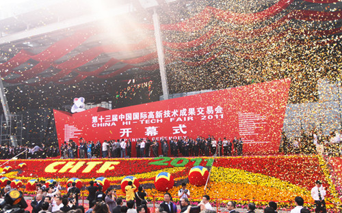 11月16日上午9点30分,第十三届中国国际高新技术成果交易会(高交会)在深圳会展中心隆重开幕。高交会开幕式由高交会组委会主任、深圳市市长许勤主持,中共中央政治局委员、广东省委书记汪洋出席开幕式并宣布开幕,全国人大常委会副委员长、民盟中央主席蒋树声,商务部副部长李金早致开幕辞,科学技术部副部长张来武、工业和信息化部副部长杨学山、国家发改委副主任张晓强、中国工程院副院长旭日干、中国工程院原副院长邬贺铨等高交会主办单位领导齐聚开幕式,广东省委副书记、代省长朱小丹,省委常委、市委书记王荣,副省长宋海,副省长招玉芳,深圳市老领导李灏等出席开幕式。