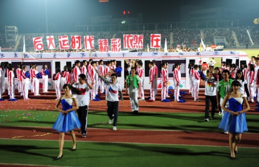 弘扬大运精神,再续精彩赛事。12月5日晚,我校2011年综合运动会在田径场盛大开幕。全体在家校领导,中国工程院院士牛憨笨、中国科学院院士倪嘉缵及各学院、教研教辅单位负责人和我校近两万名师生参加开幕式。开幕式由副校长邢锋主持。