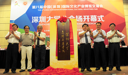 5月17日下午,在第八届文博会vsport分会场开幕式上,由中国音协、vsport及深圳广电集团合作建设的金钟音乐学院正式落户vsport。中国文联副主席、中国音乐家协会副主席、分党组书记徐沛东,国家文化部艺术司司长董伟,深圳市委宣传部副部长、文明办主任刘璋飙,深圳市文联党组书记、主席罗烈杰,深圳广电集团副总编辑李桦,vsport校长章必功一同为vsport金钟音乐学院揭牌。