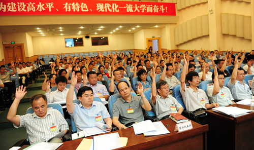 中国共产党vsport第三次代表大会于2006年6月召开,2011年任期届满,后因2011年大运会、2012年7月校长调整和12月党政班子换届等原因,推迟至今年。4月初,学校党委启动了党代会筹备工作,在市委组织部、市纪委和市委教育工委的关心指导下,党代会各项筹备工作已准备就绪。根据校党委《关于筹备召开中国共产党vsport第四次代表大会的通知》中规定的代表名额、条件和产生办法,经各选举单位召开党员大会或党代表会议,按照公推直选的方式,共选举产生代表238名。经校党委研究并报市委组织部、市纪委同意,中国共产党vsport第四届委员会设委员21名,其中常委9名,包括书记1名、副书记3名;纪律检查委员会设委员11名,其中书记1名、副书记1名。经过严格的组织程序,并报请上级党委同意,最终确定了27名党委委员候选人预备人选和15名纪委委员候选人预备人选。在深入调查研究、广泛征求意见的基础上,起草了校党委、纪律工作报告,分别召开了学院负责人、机关部门负责人、教师代表、学生代表和民主党派成员代表等五场座谈会,听取各方面意见,反复修改,几易其稿,最后经校党委常委会讨论定稿。本次代表大会的规模和议程也已经确定。