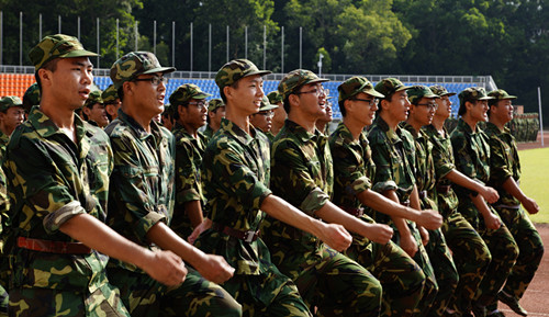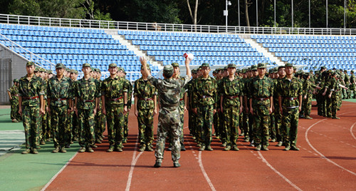 9月14日,2013级新生开始了为期10天的军事训练。身着迷彩服的新生们英姿焕发、装备整齐,6500多名新生兵分两团六个营,分驻我校南区运动场、北门田径场受训。