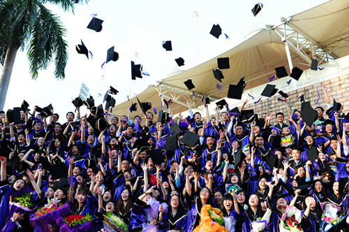 据教务部主任王晖介绍,2014年我校共有6280名应届本科毕业生将要离开学校走上工作岗位,或开始新的学习生活。毕业生分布在全校64个专业。截止6月24日统计,共有5163名本科生按照教学计划要求完成专业学习,按期取得毕业证书,有5162名本科生符合学校学士学位授予条例的有关规定,经学校学位评定委员会审议批准获得学士学位,约占2014届全部应届本科毕业生的82%。其中,有17名外国留学生分别完成了汉语言文学、国际经济与贸易专业的教学计划要求,取得毕业证书。
