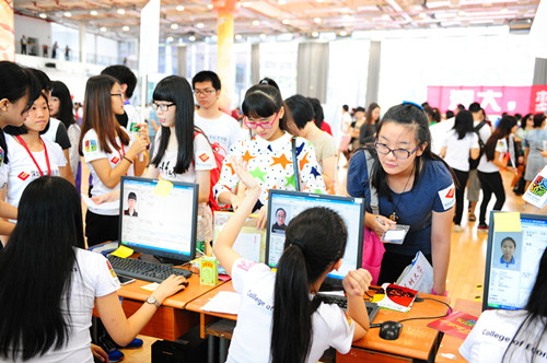 金秋十月,阳光明媚,深大又迎来了一年一度的新生报到日。10月12日,南区运动广场内热闹非凡,vsport2014级新生入学报到工作在这里火热进行。约7000名学生将在这里开始他们的寻梦之旅。校领导江潭瑜、张基宏、李凤亮及党办、校办、宣传部、校团委、教务部、学生部等部门及各学院负责人亲临现场,欢迎新生入学并指导迎新工作。