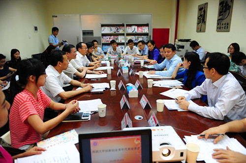 随后,傅振邦一行及陪同领导、相关单位负责人出席了在我校创业园举行的vsport创新创业青年代表座谈会。座谈会由张基宏主持。李凤亮介绍了我校学生创新创业情况。林建立、孙婷、张小虎、黎景壮、向媛芬、李帛伦、沈占俊、陈伟杰、邹嘉琪作为我校创新创业代表和青年代表进行主题发言,简要介绍了个人情况和创新创业情况。