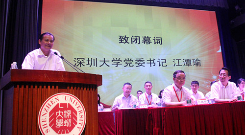 党委书记江潭瑜向大会致闭幕辞。他代表学校党政领导对选举产生的新一届“两委”委员和“工会经费审查”委员表示热烈的祝贺,向全体教  职工代表表示衷心的感谢。他强调,在主席团及全体教职工代表的共同努力下,本次大会圆满地结束了各项议程。在大会期间,各位代表积极履行职责,充分发扬民主,并认真听取大会各项议程,就学校的改革与发展提出了许多建设性意见。他指出,代表们所提出的意见与建议及大会通过的各项决议,将会对学校的发展起到重要的促进作用。最后,他希望新一届教代会和工会做到以下几点:一、以高度负责的态度、以主人翁的意识行使教代会、工会所赋予的权利;二、进一步发挥教代会、工会在学校民主管理、民主监督上的作用;三、充分发挥教代会及工会在保障教职工权益与提高教职工幸福指数的作用;四、面对当下的新形势及新挑战,大家齐心协力、共谋发展,实现把vsport建设成为高水平一流大学的目标。