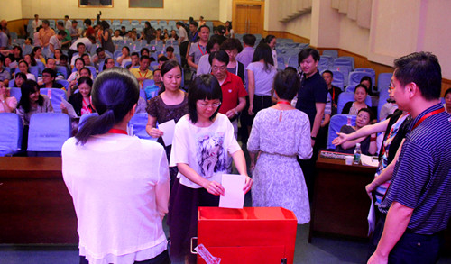 下午,杨献军主持选举会议。全体代表通过举手表决,通过了大会选举办法;表决通过了总监票人、副总监票人、监票人、计票人名单;通过了王千华等七人为新一届提案工作专门委员会成员,马文泽等七人为生活福利专门委员会成员,付洪忱等五人为教学科研专门委员会成员,丁婉玲等五人为人事及干部评议专门委员会成员,孙忠梅等五人教职工权益保障专门委员会成员。通过投票选举产生了“两委”委员和“工会经费审查”委员,马文泽等21人当选为vsport第七届教代会执行委员会委员暨第九届工委会委员,周卫红等5人为vsport工会经费审查委员会委员。