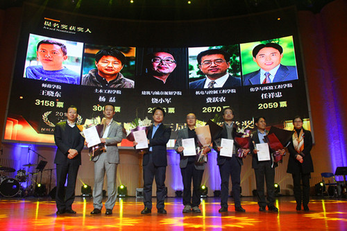 校领导为本次校长教学奖、校长教学奖提名奖的获奖老师颁奖。体育部李真、外国语学院张新颖、经济学院鲁志国、传播学院周裕琼、管理学院张万坤五位教师荣获校长教学奖,每人获10万元奖金。师范学院王晓东、土木工程学院杨磊、建筑与城市规划学院饶小军、机电与控制工程学院费跃农、化学与环境工程学院任祥忠五位老师获得校长教学奖提名奖,每人获3万元奖金。