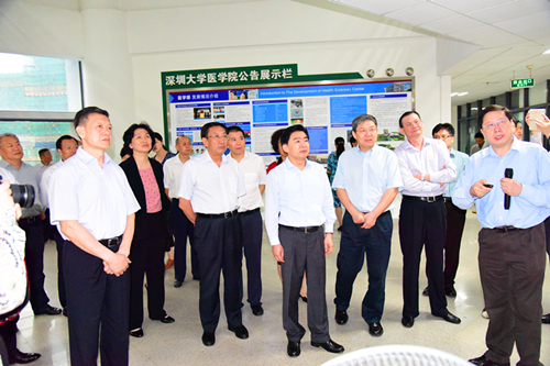 5月3日下午,广东省政协主席王荣、政协副主席温思美、教育厅副厅长邢锋一行来我校调研,考察我校的高水平大学建设工作。深圳市政协主席戴北方,副市长吴以环,政协副主席张晓莉,我校党委书记江潭瑜,校长李清泉,副校长李凤亮、黎军、徐晨等陪同考察。