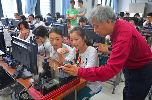 当天下午,“格致班”分成两组分别参观了高等研究院、计算机与软件学院和文博会深大荔园分会场、机电与控制工程学院。在高等研究院,学院的老师们为到来的同学们精心准备了一场前沿科技的饕餮盛宴。首先,韩志超院长致欢迎辞,并介绍了高等研究院的发展情况;潘科教授和Derek教授则介绍了学院的各个专业方向及各自科研项目的研究情况;韦阳博士则详细地描述了高等研究院极具特色的培养机制。在场的同学们都被学院这种交叉性、前沿性、拔尖性的人才培养特色所深深吸引。接着,同学们在老师的带领下参观了金融实验室、中央实验室、PCR技术演示和显微镜实验室,各种先进仪器令同学们大开眼界。在计算机与软件学院,同学们参观了云计算机智能服务中心、国家教学实验室和大数据实验室。最后,学院毛睿副院长还专门为同学们开了一场小讲座,介绍了学院的师资力量和科研水平,并和大家一起探讨我国计算机的发展现状。他风趣幽默而又极具见地的语言赢得了同学们的阵阵掌声。在文博会深大荔园分会场,同学们被琳琅满目的创意产品所吸引,并加入了互动:成群的男生在虚拟现实技术的游戏互动区域玩得不亦乐乎,不少女生则专注地盯着3D打印机的运作,不时地询问摊位负责人相关原理。而在机电与控制工程学院,同学们还参与了PPCNC(个人便携式数控机床)的使用体验,观看了VR(虚拟现实)展示城市轨道交通的运行以及RoboPilots俱乐部的机器人比赛模拟赛场。