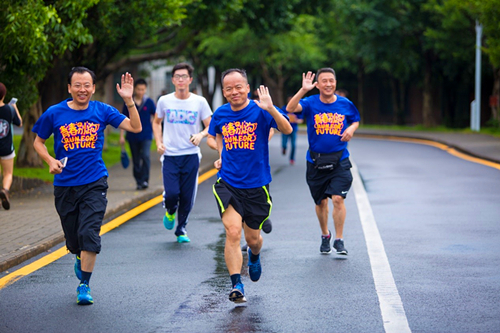 尽管当天下着微雨,但丝毫不影响大家参与活动的热情。参加活动的师生们早已穿好运动衫,蓄势待发。在主持人宣布开跑之后,校领导们带着大家热情地奔跑在深大校道上。经过近半小时的乐跑,到达终点站石头坞广场进行活动最后一项游戏抽奖环节。奖品由万科房地产公司提供,万科相关负责人抽取获奖名单并为获奖同学颁奖。