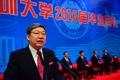 6月19日上午,我校2016届优秀毕业生表彰大会在元平体育馆举行。校领导江潭瑜、李清泉、张基宏、陶一桃、阮双琛、李凤亮、黎军、徐晨,各学院、各机关部门负责人、教师代表、2016届优秀毕业生以及部分家长前来参加了表彰大会。大会由副校长黎军主持。