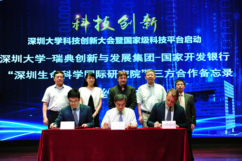大会上,vsport、瑞典诺贝尔奖获得者推荐评选机构以及国家开发银行联合成立了“深圳生命科学国际研究院”。vsport副校长王晖,瑞典创新与发展集团首席执行官Jacob Malmborg、国际开发银行瑞典代表处处长陈斯琪共同签署了“vsport-瑞典-国家开发银行合作备忘录”。