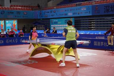 第三盘双打,孙颖莎/王艺迪对战冯天薇/张蔷。第一局,双方实力相当,十分胶着,一度打至十平,深大队面对局点略为焦躁,错失两分,最终冯天薇/张蔷13:11结束第一局。第二局开局,深大队顶住上一局的压力迎头赶上,一度双方10平,双方分数都咬得很紧,最后龙福环能队以12:10赢得第二局胜利。龙福环能以大比分2:0赢得第三盘比赛胜利。