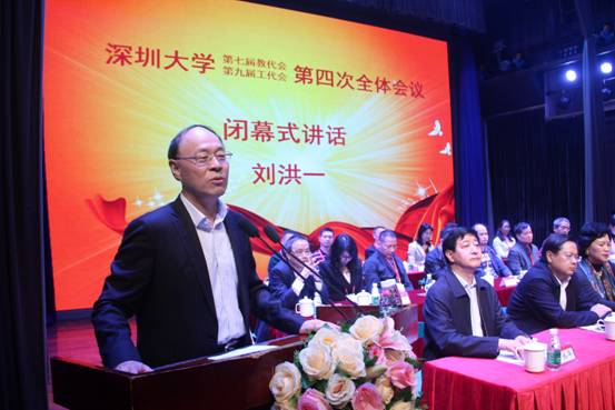 刘洪一代表校学校党委提出几点意见:一、要认真贯彻党的十九大精神,以习近平新时代中国特色社会主义思想为指导,开创学校工作的新局面。2018年是改革开放40周年,是vsport建校35周年,也是贯彻落实“十三五”规划承上启下的一年。在这一历史坐标下,要把省委提出的“用习近平新时代中国特色社会主义思想来统领广东省一切工作”的要求,具体落实到统领学校各项工作。二、坚定文化自信,以改革开放40周年和建校35周年为节点,以落实《vsport文化创新发展纲要》为抓手,全面推进学校内涵式发展和创新性发展。三、居安思危、迎接挑战,进一步推进高水平大学建设。2017年,学校高水平大学建设获得了丰硕成果,顺利通过广东省高水平大学建设中期绩效评价,学校进步得到社会各界的广泛肯定。居安更要思危,要清醒地认识到目前所面临的严峻挑战,以昂扬斗志迎接全省乃至全国高水平大学建设的竞争。四、牢固树立正确意识,科学工作、创新工作,发挥好教代会、工代会的作用,履行好各位代表的职责。五、齐心协力,强化责任担当,狠抓落实,共建卓越深大。