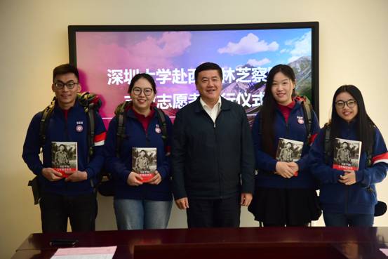 范志刚代表学校向四名支教志愿者表示祝贺。他说:“四位志愿者经过层层筛选脱颖而出,代表深大向大山里的孩子送去温暖与祝福,你们是深大的骄傲。”范志刚说,赴西藏林芝察隅支教是一件非常有意义的事情,从大方面来说,援疆是国家重要战略,深圳作为国家发展中的亮丽名片,援疆扶贫,深大义不容辞。从小的方面来说,四位志愿者正处于美好的青春年华,在此阶段选择赴藏支教对他们的个人成长会有巨大的帮助。相信这段经历会在他们的人生轨迹上画上浓墨重彩的一笔。范志刚代表学校对志愿者们提出了殷殷期望,希望志愿者们珍惜这段难忘的时光,要有吃苦精神,接受锻炼,磨练自己的意志;彼此之间相互关心、相互爱护,为校争光。