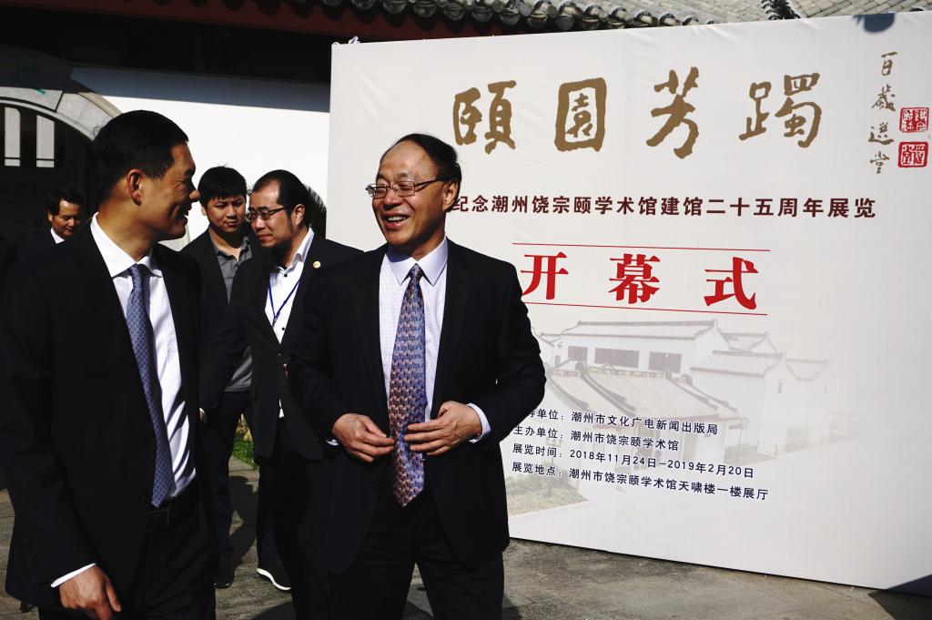 11月24日,我校党委书记刘洪一、党委副书记范志刚出席在潮州市饶宗颐学术馆举行的《颐园芳躅——纪念潮州饶宗颐学术馆建馆二十五周年》展览开幕式。香港潮属社团总会创会会长陈伟南,香港潮属社团总会主席陈幼南,香港潮属社团总会名誉会长黄书锐;潮州市委书记、市人大常委会主任刘小涛,潮州市委副书记、市长殷昭举,韩山师范学院党委副书记林光英,饶宗颐学术馆基金会联席主席谢锦鹏等出席开幕式。