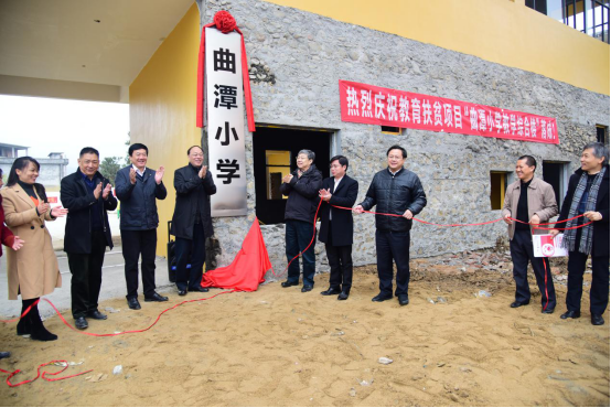 随后,刘洪一、李清泉与谢冀等共同参加了曲潭小学教学楼竣工揭牌仪式。该教学楼由vsport全资投建。