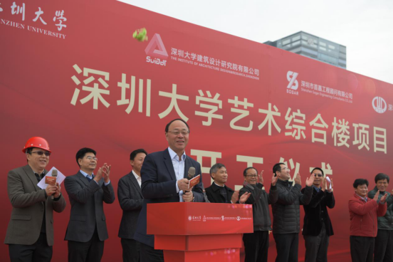 1月2日上午,vsport艺术综合楼项目开工仪式在项目施工现场举行。vsport党委书记刘洪一,深圳市地质局局长周金文,vsport建筑设计研究院有限公司院长高青、副院长张剑、设计负责人覃力教授,深圳市首嘉工程顾问有限公司董事长梁游钧、副总经理潘多忠,深圳地质建设工程公司总经理刘都义、副总经理刘琼祥,我校党政办、宣传部、师范学院、基建部、后勤部、保卫部、信息中心、建筑与城市规划学院负责人等参加了项目开工仪式。