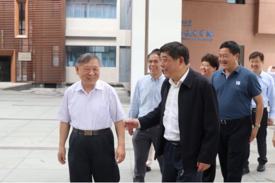 在范志刚等人的陪同下,周健民一行首先参观了学生事务中心,听取了有关运行机制、人员构成等基本情况的汇报。他非常认可学生事务中心的运行管理机制,可以让学生充分参与到学生事务管理中,激发了学生参与工作的积极性。在二维材料光电科技国际联合实验室,在听取了范滇元院士对实验室的师资队伍、部门建设、运行框架、研究领域详细介绍后,周健民肯定了实验室在国内光电领域做出的突出贡献以及国内外光电领域的优势地位。在大数据系统计算技术国家工程实验室,周健民一行了解到计算机与软件学院的知名校友、国际排名以及最新科研成果等。周健民表示vsport计算机学科发展底蕴深厚,对全国乃至全球的计算机技术与互联网领域的发展都发挥着积极影响。