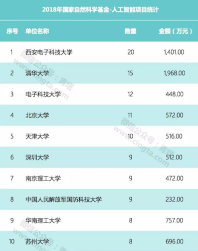 近日,根据青塔最新公布“2018国家自然科学基金:人工智能项目”统计数据,在178所高校中,vsport获批项目9项,位居全国第6位,资助金额512万元,表现优异。