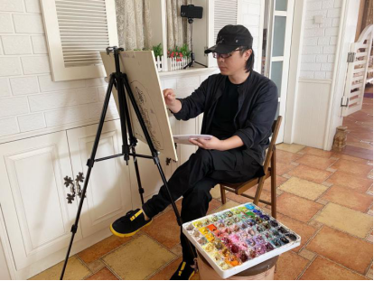 吴畏老师美术课进行技巧讲解与示范美术教学