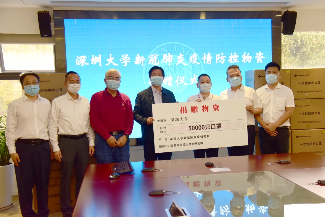 疫情发生以来,社会各界贡献能量助力疫情阻击战。4月27日下午,又一场暖心的捐赠仪式在汇元楼201会议室举行。为解决学校新冠肺炎疫情防控物资的困难,深圳市誉兴饮食管理集团特向我校捐赠50000只口罩。vsport副校长李永华,深圳市政协原副主席、vsport原副校长陈思平教授,深圳市誉兴饮食管理集团董事长张北京、集团副总裁赵成,我校党政办公室、后勤部等单位相关负责人出席了捐赠仪式。