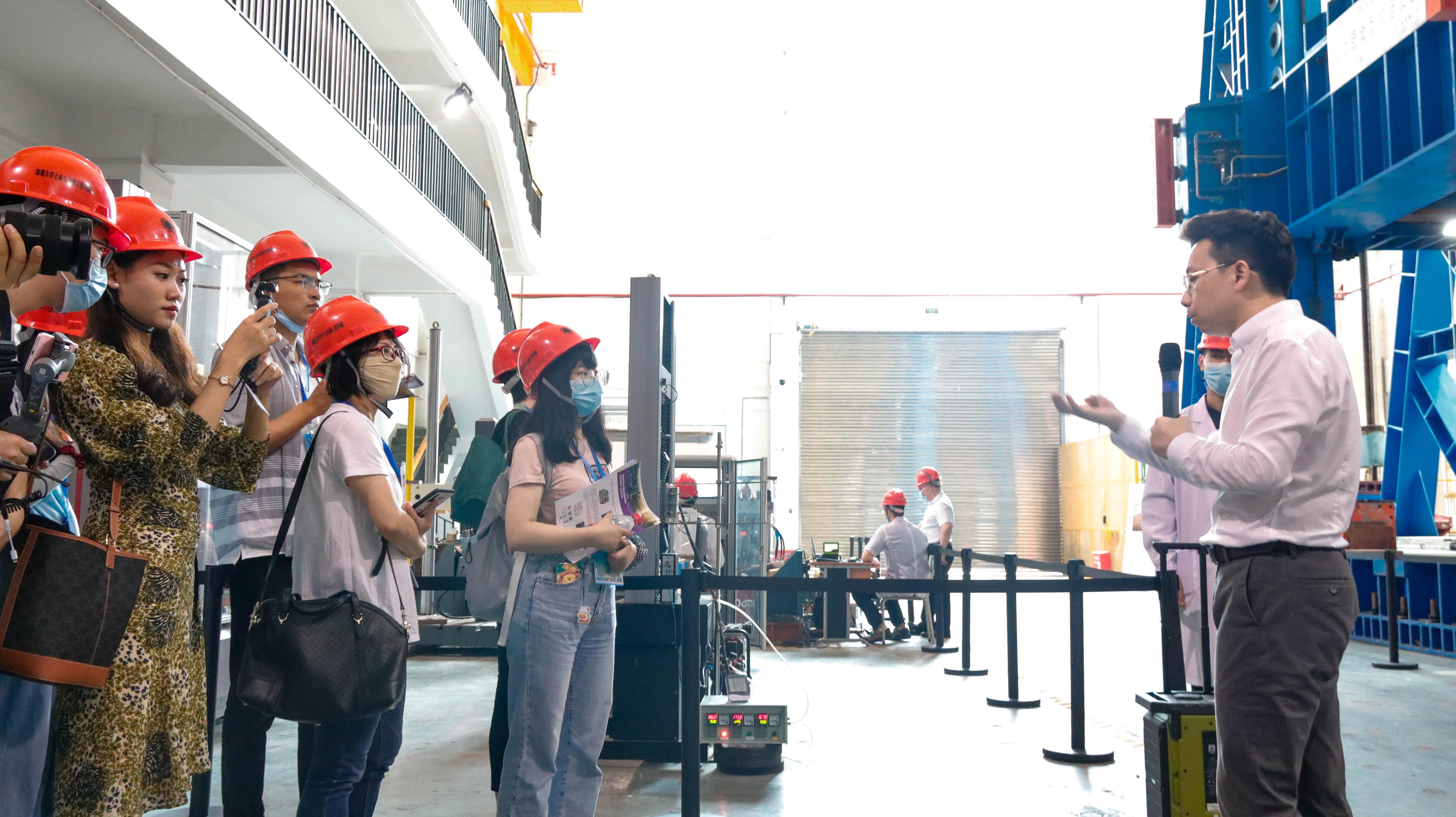 随后,记者们戴着安全帽走进滨海城市韧性基础设施教育部重点实验室,通过了解学院丰硕的科研成果,体会“夯土筑诚,砺木至真”的深大土木精神。“随着我国城市建设规模的不断加大,如何提升城市基础设施的韧性,确保其安全、可靠和高效运行,是直接关系到一个城市的经济、社会发展和人民生活水平提高的关键问题。”该实验室在中国工程院院士、我校土木与交通工程学院院长陈湘生的带领下,在滨海城市韧性基础设施领域进行了较系统和深入的研究,完善了城市地下空间开发及利用、交通基础设施智能监测与安全控制、结构工程全寿命设计与性能保障、城市韧性基础设施智慧建造与管理的理论框架和研究方向。今年2月,陈湘生院士还在央视《开讲啦》栏目与大家分享了地铁建造的故事。