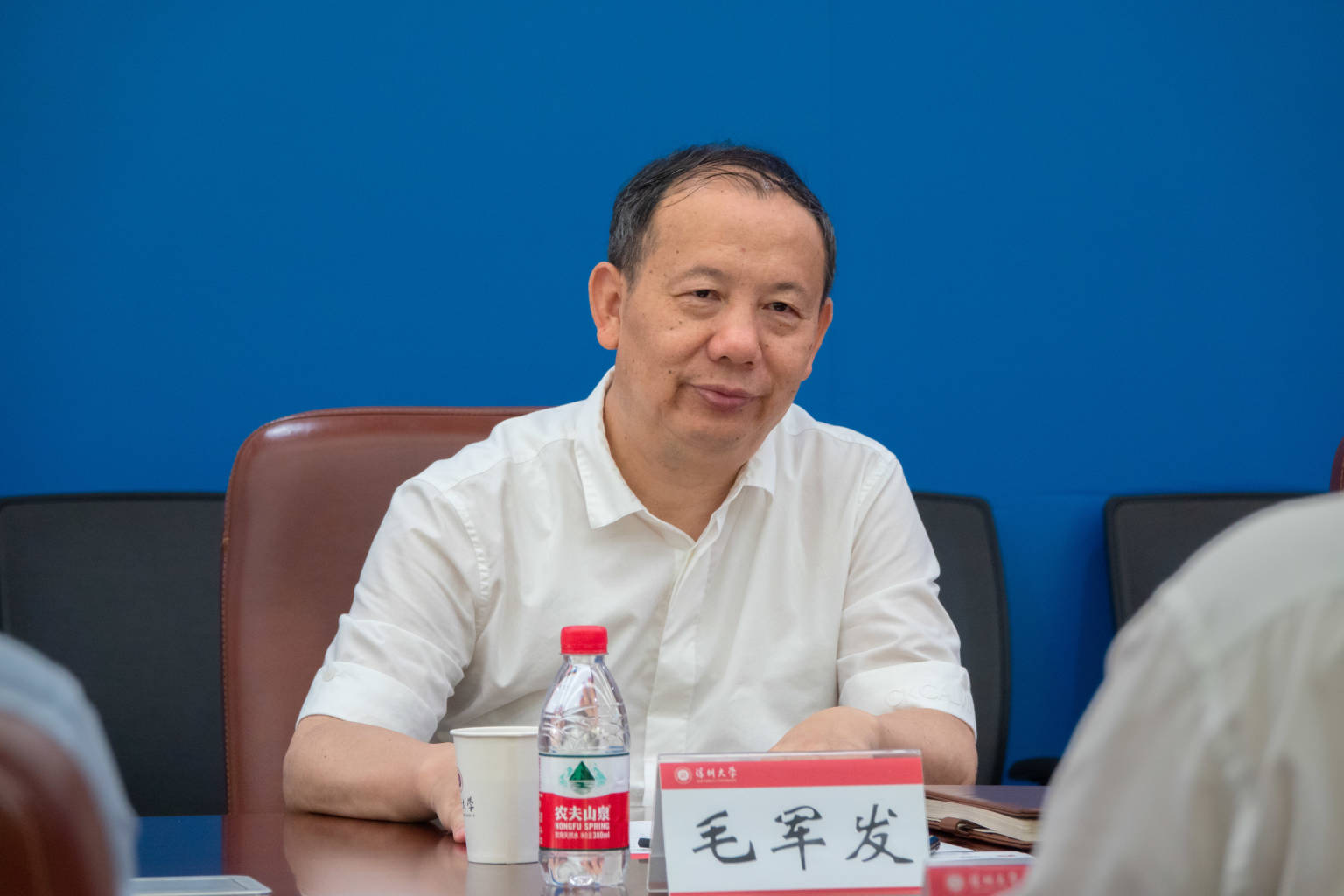 毛军发对马海旭一行的到访表示欢迎和感谢。他表示,华为公司与vsport有着千丝万缕的联系,皆于80年代改革开放创业潮的历史背景下建立,一起在深圳成长、壮大,共同见证了深圳经济特区波澜壮阔的发展历史。在此期间双方携手合作,为深圳经济特区建设发展培养输送了大批人才,作出了积极贡献,华为公司创始人任正非与首席财务官孟晚舟皆为vsport杰出校友,目前在华为公司工作的深大学子已有700多人。毛军发指出,vsport的发展目标是在本世纪中叶建设成为世界一流创新型大学,所以必须把脚步从深圳踏向全国、迈入世界,为地方经济技术的发展作出更多贡献。而华为公司作为根植特区、走向全球的科技企业,在信息与通讯技术等领域领先全球。因此,双方加强深度交流合作是推进科研和人才更好发展的题中应有之义。他表示,希望在人才培养、科研创新、校园信息化等方面得到华为公司的大力支持,启动新一轮的框架性战略合作协议。毛军发表示,互利共赢才是长久发展之计,双方深度合作将加快深大建设成为世界一流大学的步伐,深大也将不遗余力为华为“浴火重生”贡献力量。