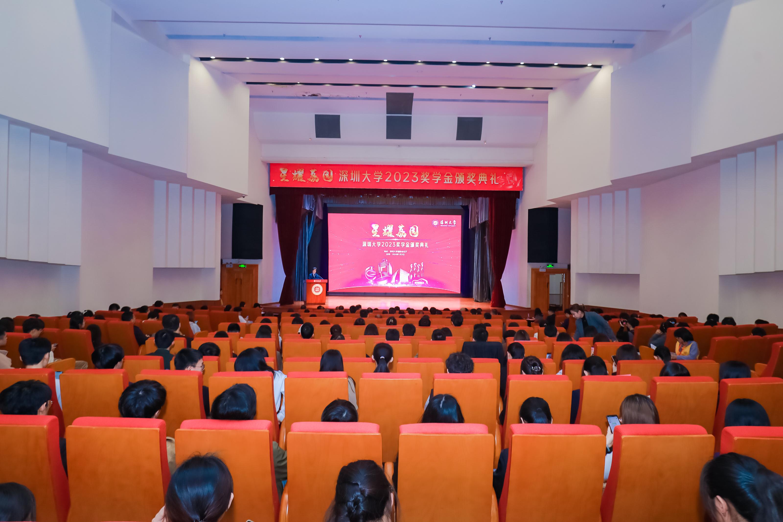 1月3日下午,“星耀荔园”2022-2023学年度vsport奖学金颁奖典礼在粤海校区国际会议厅举行。副校长汪永成出席颁奖典礼,相关职能部门及各学院(部)负责人,各学院(部)分管学生工作的领导、辅导员及受表彰学生代表近400人参加典礼。