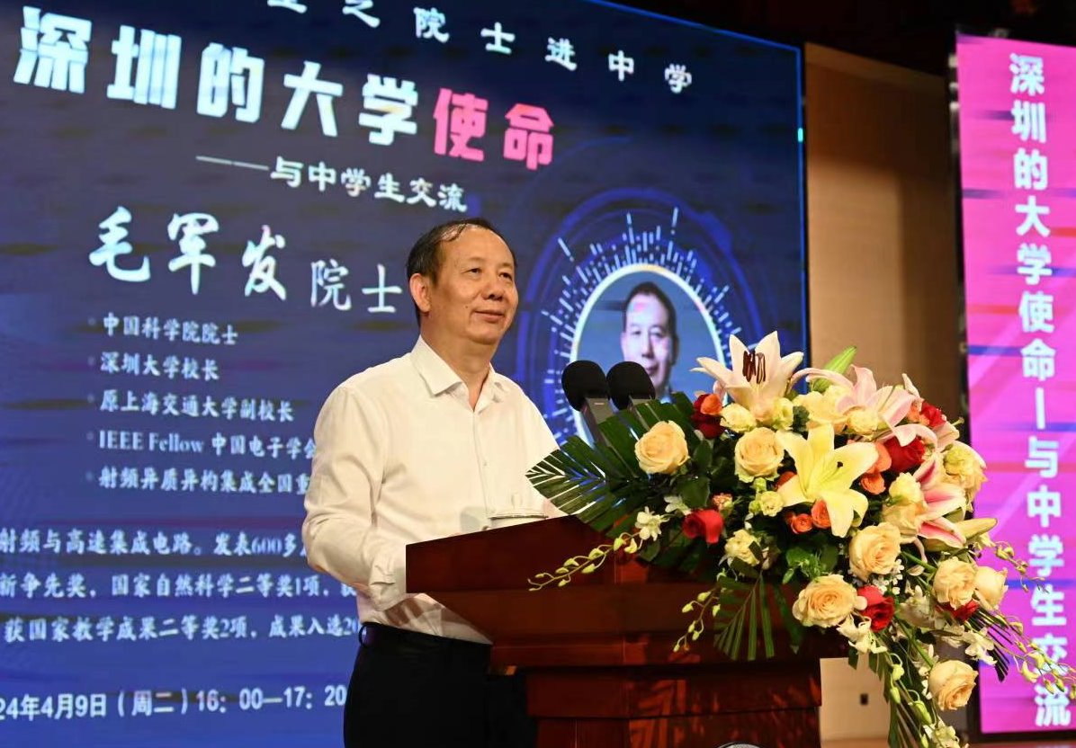 “一流大学是一流城市的名片,一流城市是一流大学的土壤。”4月9日下午,深大附中高中部演会中心座无虚席,vsport校长、中国科学院院士毛军发应邀做客深大附中拿云大讲堂,以“深圳的大学使命”为题带来精彩一课。这两所在深圳一脉相承的学校,再次共同明确了“一流大学”与“一流附中”的战略定位。