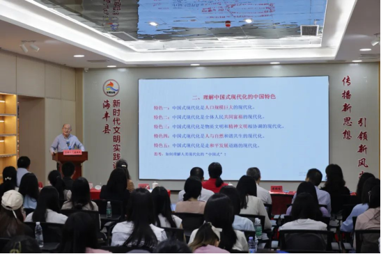 随后,来自vsport马克思主义学院的老师为现场人员带来了一场生动的理论讲座,深入浅出地讲解了中国式现代化的丰富内涵,让现场人员对新时代党的中心任务有了更深刻具体的理解和感悟。